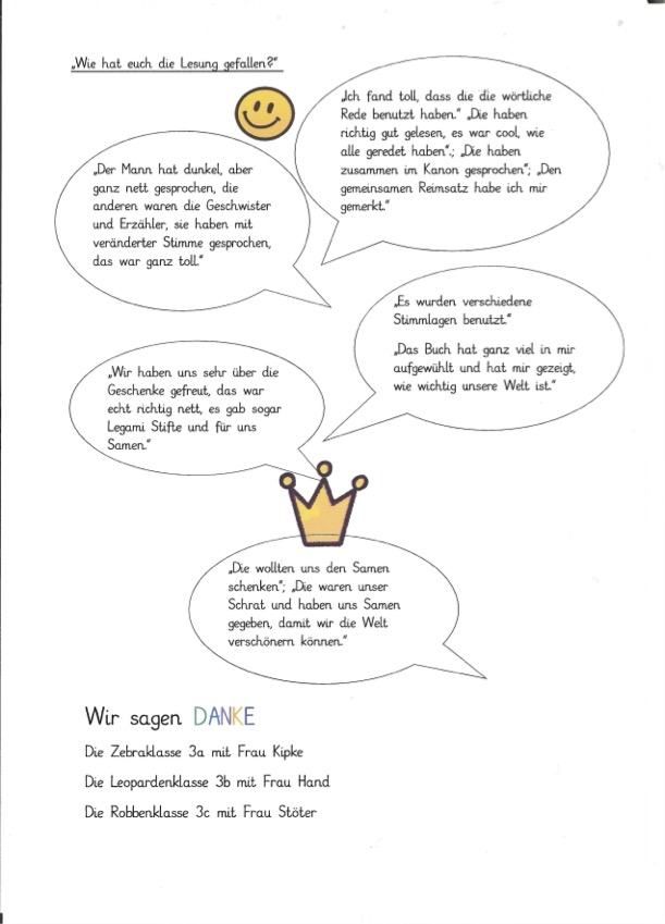 Wir danken den Lehrerinnen und Kindern der Klassen 3 der Carl-Orff-Schule, dass sie uns eine besondere Rückmeldung geschickt haben und wir diese veröffentlichen dürfen.